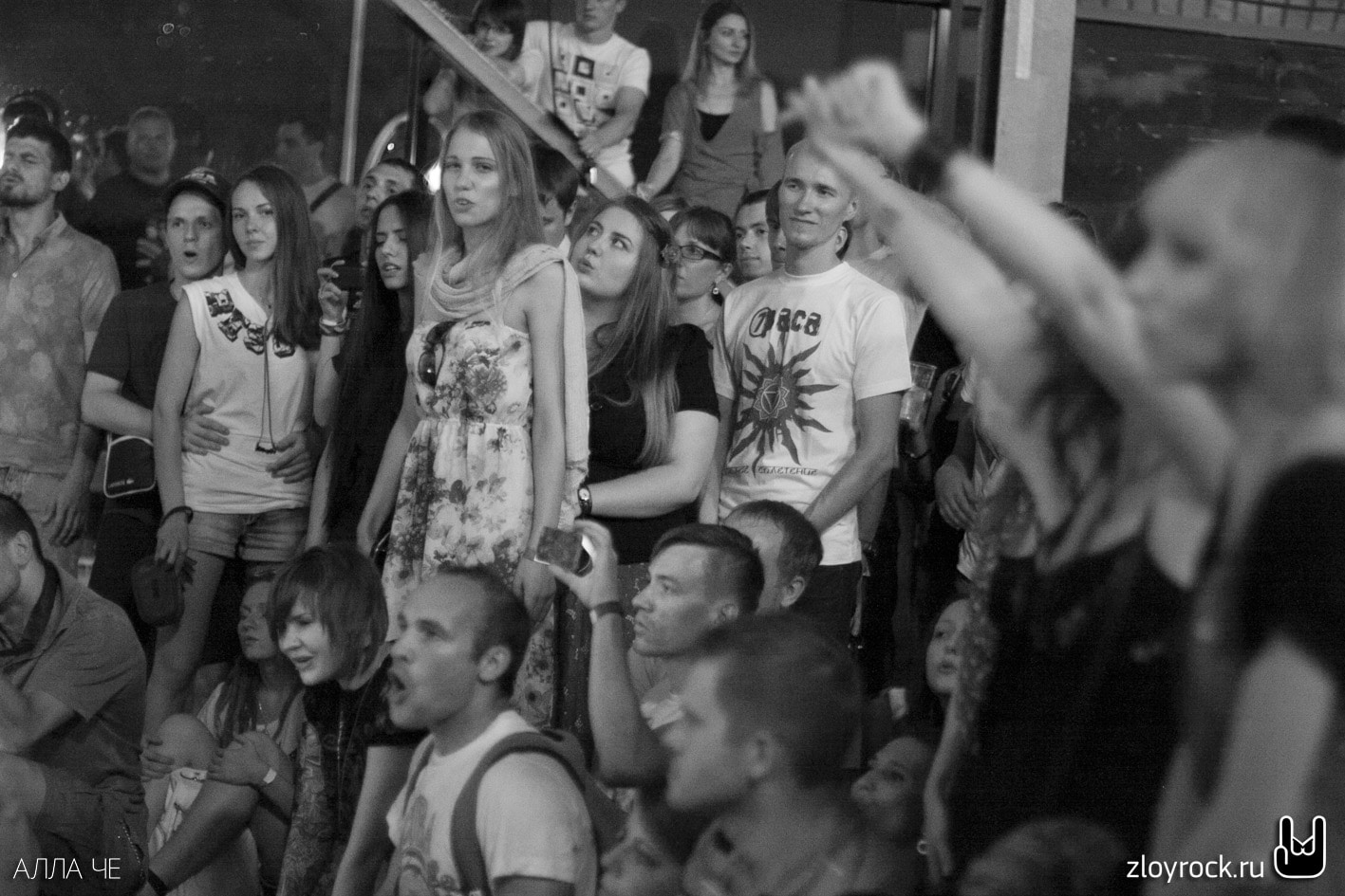 Разогревом выступления стала Женя Любич, концерт которой был заранее отдельно объявлен. Её пение явно не было по душе собравшимся альтернативщикам, жаждущих слышать жесткие гитарные мотивы и барабанные партии. И закончилось, к облегчению собравшихся, лишь после 22 часов. Многие так устали ждать начала концерта, что сели вокруг сцены, словно вокруг костра. Но когда вышли музыканты и Саша Растич запел — всё негативное сменилось на позитивное, а его слова о сложившейся ситуации воодушевили ещё больше: «Нас е*ут, а мы крепчаем».