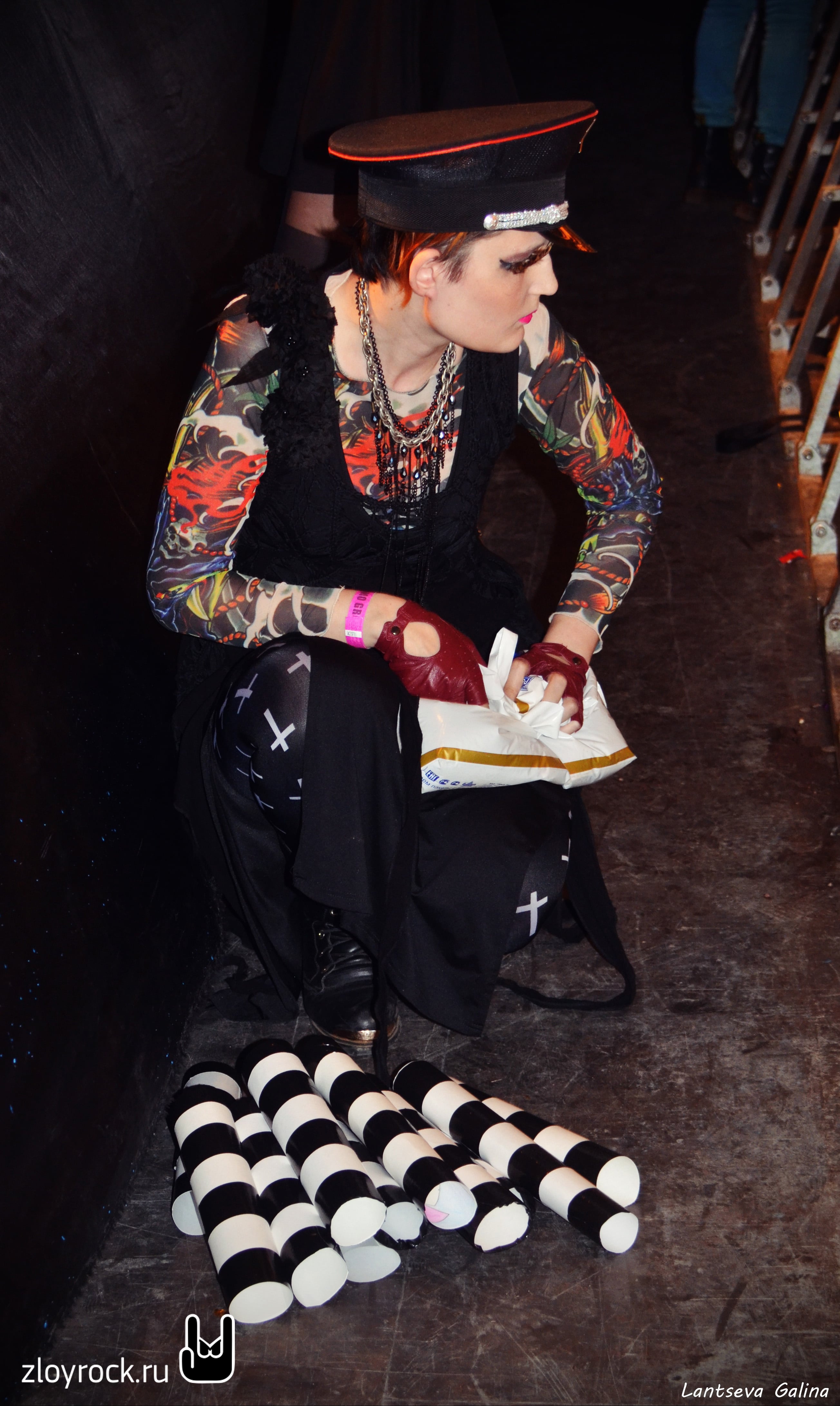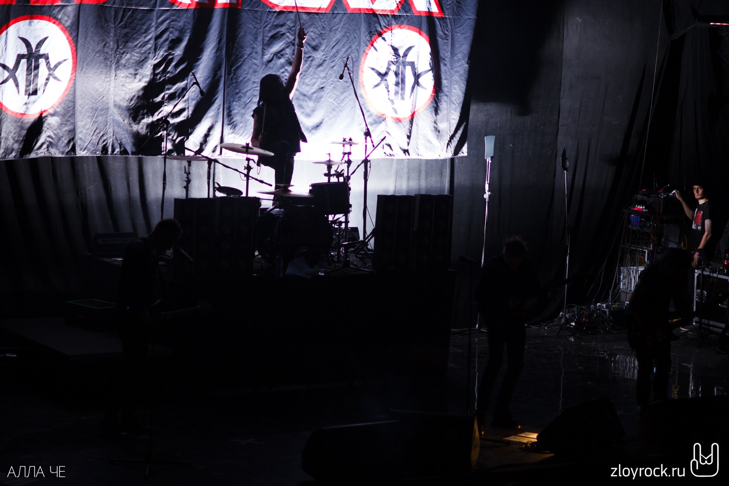 Когда настало время, играющая в зале мрачная музыка стихла, а свет на сцене погас и на сцену по очереди вышли музыканты. Все — в одежде чёрного цвета.