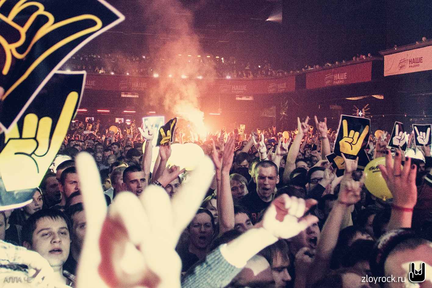 Илья Чёрт, взойдя на сцену, сразу поприветствовал всех собравшихся: «Мальчишки и девчонки, дамы и господа, добро пожаловать на нашу рок-дискотеку!», и начал рок-программу с песни «Рок». С первого же аккорда публика не жалела сил: все уверенно подпевали, вскидывая «козы», в том числе «козы» на бумаге, специально подготовленные для флешмоба. На энергичных куплетах зал прыгал, а на лиричных поклонники качали руками. Перед концертом повсюду в зале лежали жёлтые шары с символикой «Пилота», а во время шоу они взлетали в воздух, долетали до сцены и возвращались обратно к зрителям, даря любимое с детства ощущение праздника. Несколько человек в центре зала устроили яркое файер-шоу, ставшее традиционным для крупных рок-концертов.
