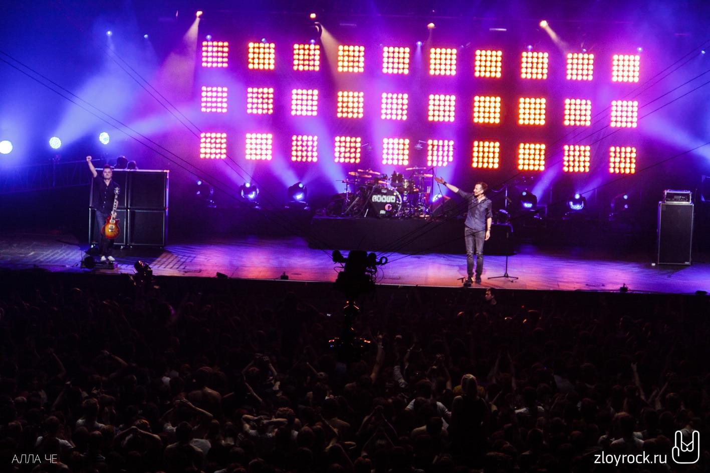 Когда вышла группа, зал неистово взорвался и уже не замолкал, подпевая каждую песню. Некоторые из них предварялись небольшим повествованием, раскрывающим главную мысль текста. Так, песню «Хамелеон» Тэм назвал «посвящением тем, кто ушёл из жизни очень рано», а «Марш согласных» — «о том, почему небо в огне возможно», а когда на душе неспокойно, вокалист посоветовал «послать проблемы» с песней «Fuck Off».