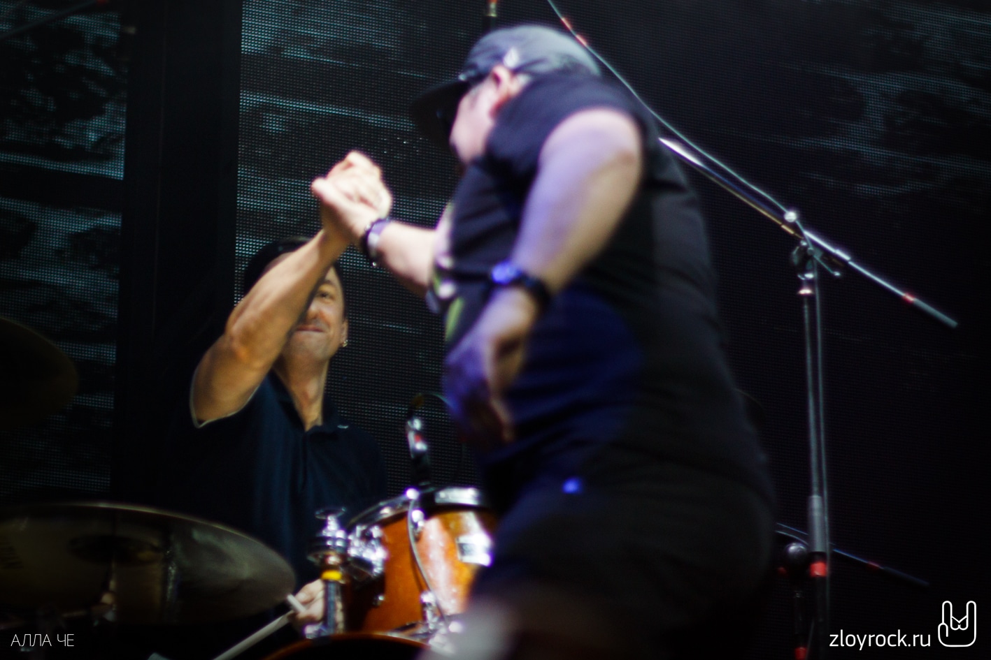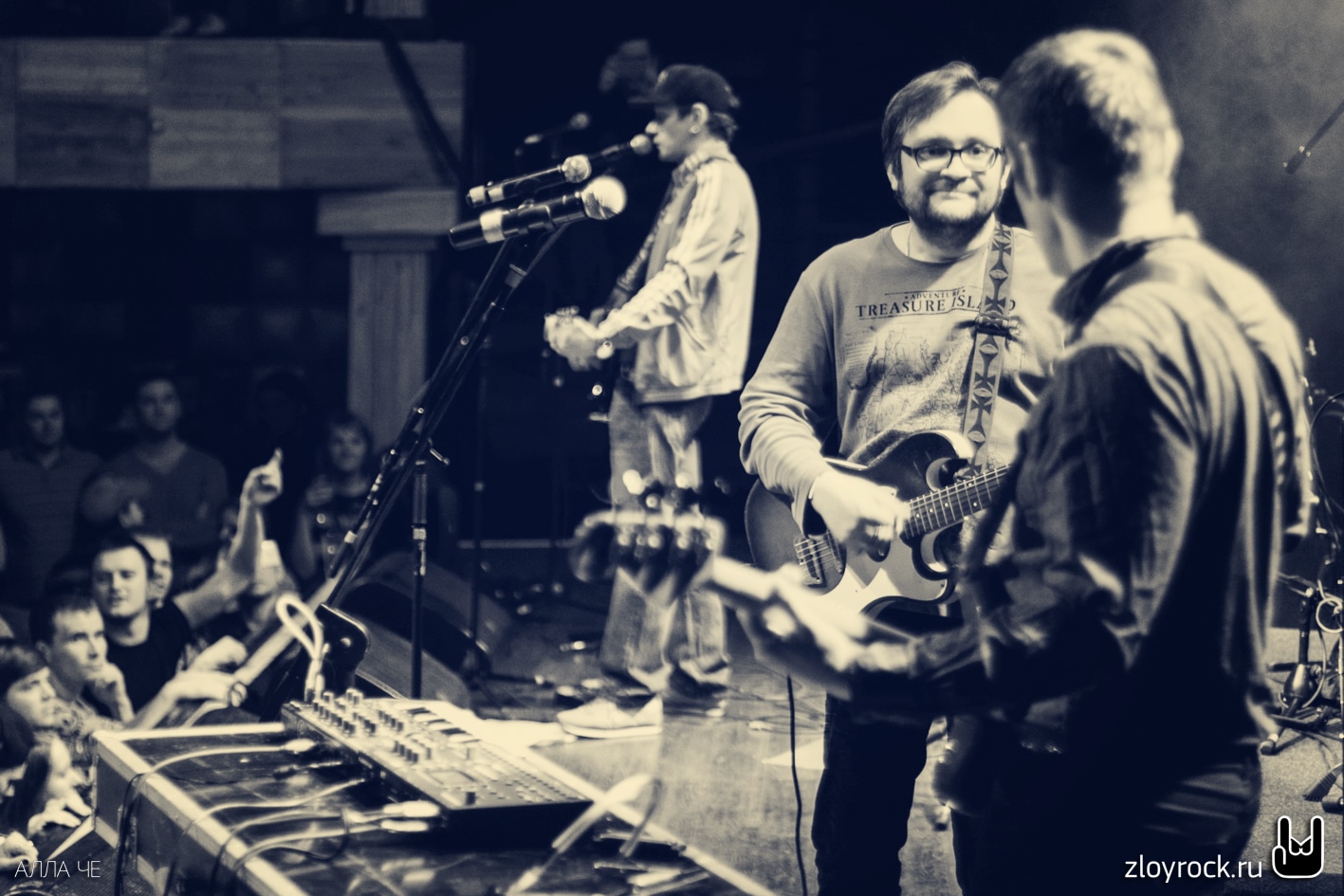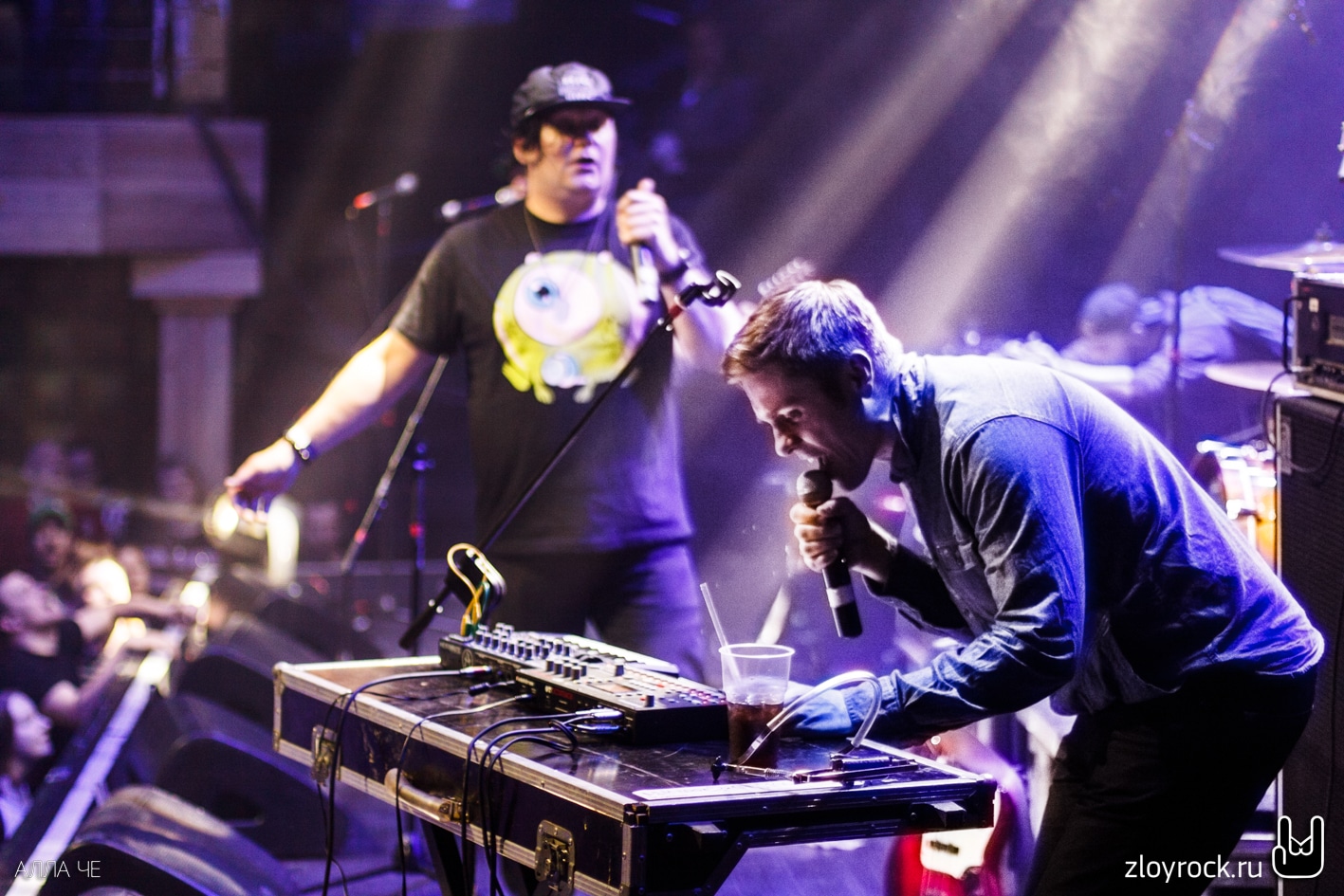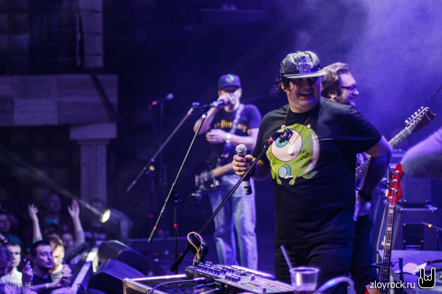 В сумраке зала на экране за спинами музыкантов фоном стала кирпичная стена. Троица петербуржцев вышла на сцену и заиграли «Вперед/Бодрит» и казалось, что строки «Надо же, какой я молодой!» Вася поёт о самом себе. А группа сохранила свой юношеский задор до сих пор. Зал сразу раскачался от таких боевиков как «Кирпичи тяжелы», «Смерть на рэйве», «Давай микрофон», «Конь-людоед», «Summertime» и, конечно, «Школьнички», «Байка» и «Плюю я».
