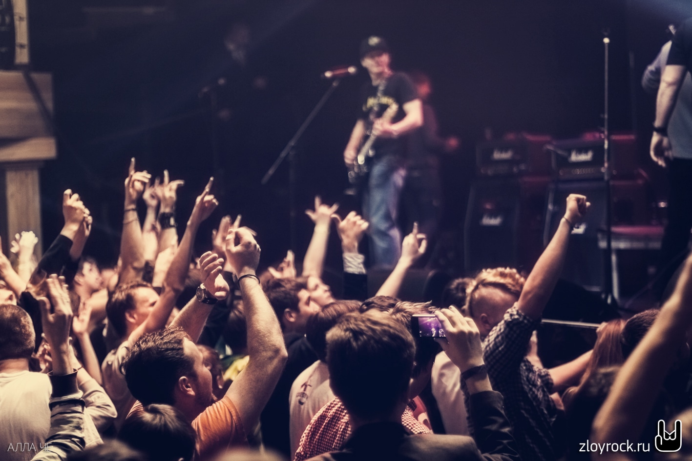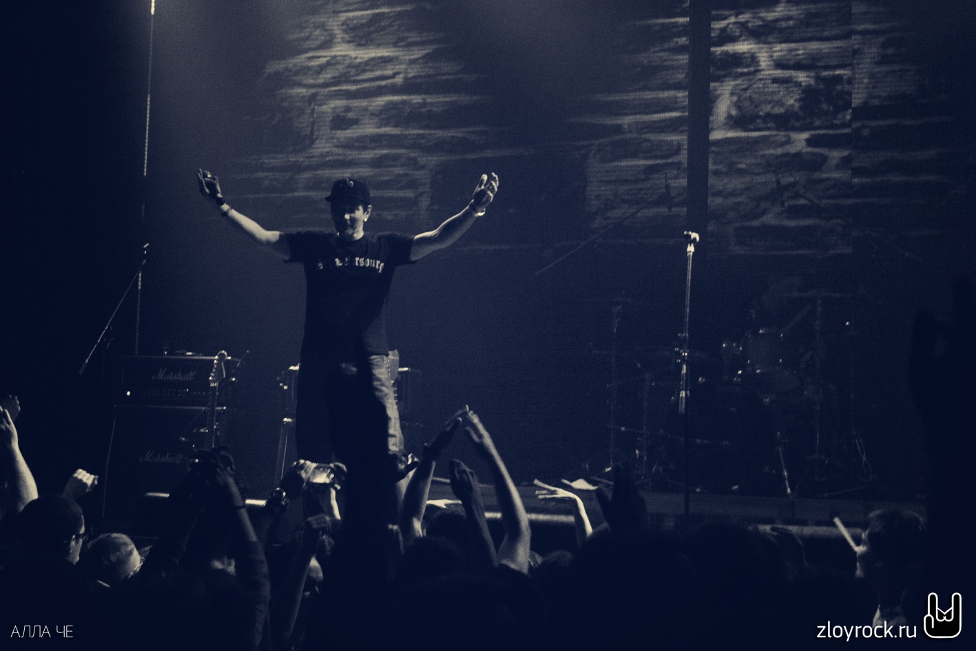 Кто-то пытался взобраться на сцену в попытке устроить стэйдждайвинг, но недремлющие охранники быстро успокаивали желающих, возвращая их обратно в зал. А в зале творился слэм и драйв. Так и нужно по-настоящему, в кругу поклонников и друзей отмечать круглые даты. 16 апреля «Кирпичи» отпраздновали юбилей и доказали, что также молоды и также тяжелы, как в начале нулевых. Смотрите наши фотографии с мероприятия.