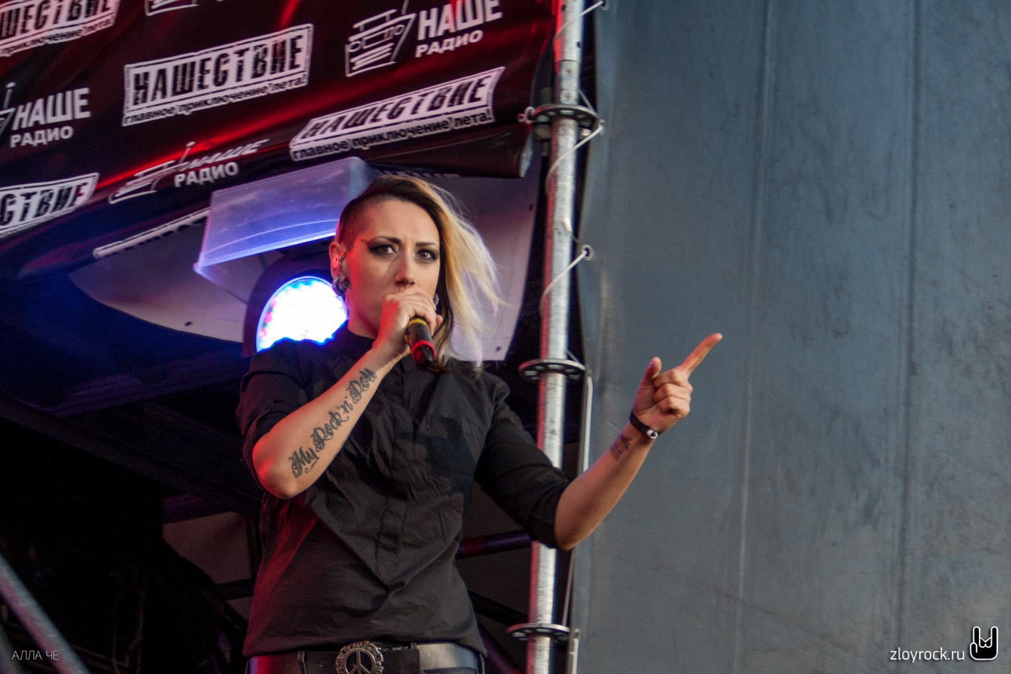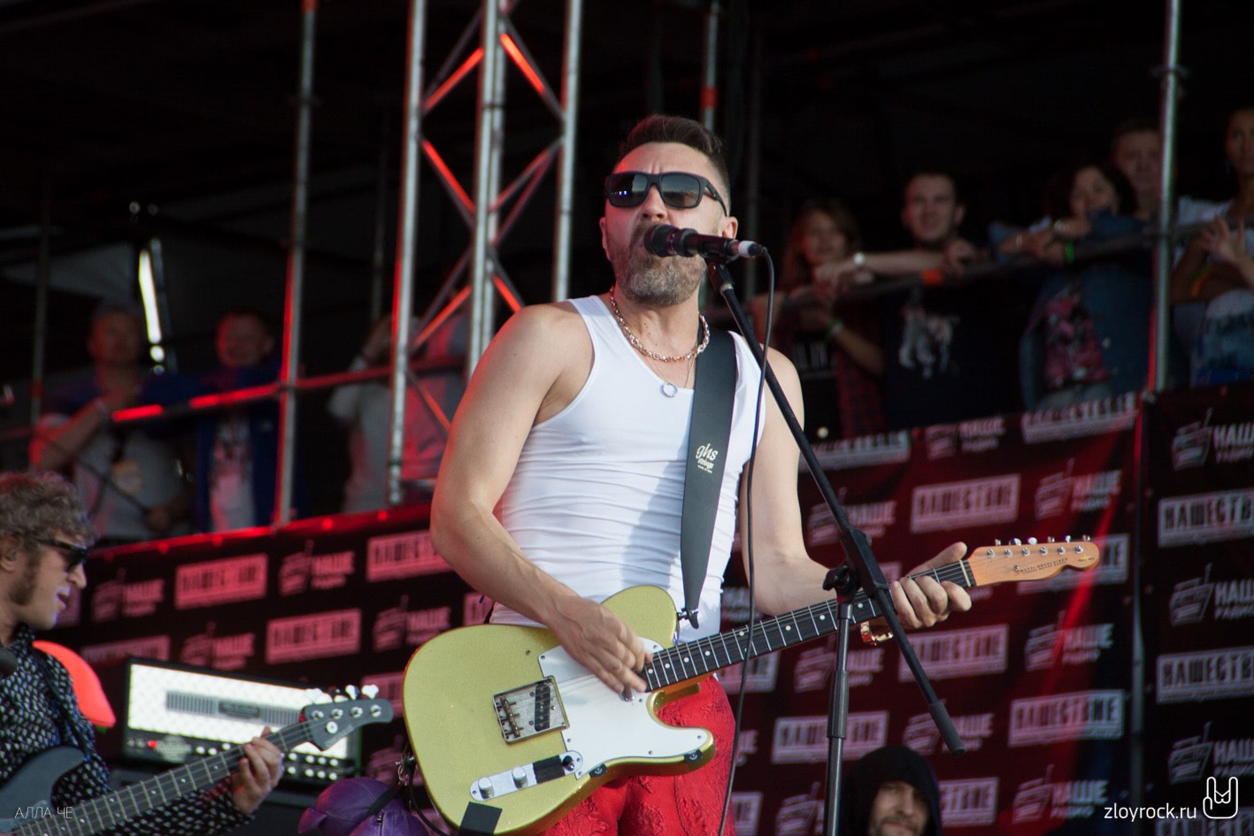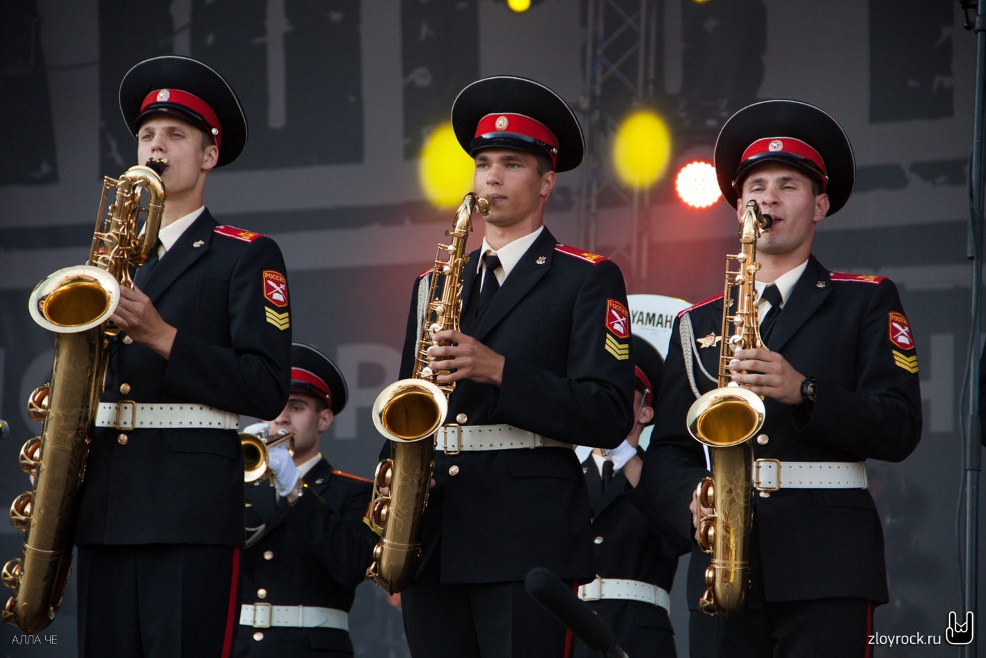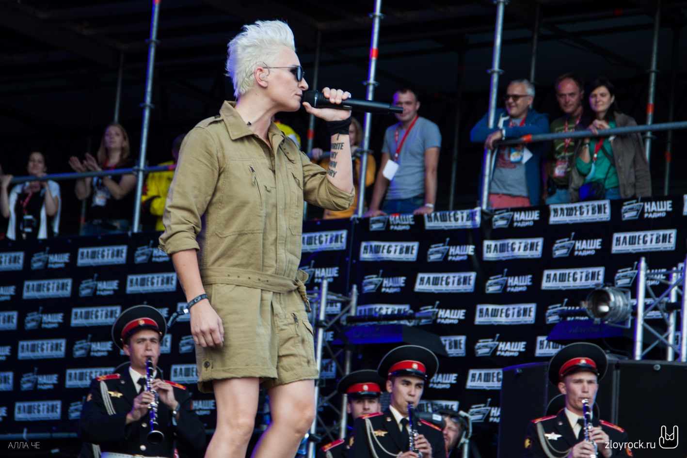 Официальное открытие фестиваля началось в 17 часов. Оркестр Московского военно-музыкального училища сыграл разные музыкальные произведения. После чего вместе с «Ночными снайперами» продолжили играть песню «Столица». Группа впервые открывала фестиваль «Нашествие». Оркестр покинул сцену, а Диана переоделась из шорт в платье и продолжила своё выступление. Поклонники подготовили свой флешмоб, украсив VIP-партер флагами с логотипом любимой команды. К сожалению, по техническим причинам группа Louna выступала без симфонического оркестра «Глобалис». Тем не менее, толпа в фан-зоне, в прямом смысле слова, горела под музыку группы: то и дело зажигались фаера и цветной дым. Были исполнены самые хитовые треки, наиболее подходящие для опен-эйров: «Мой рок-н-ролл», «Бойцовский клуб», «Штурмуя небеса», «Ночь, дорога и рок», «С тобой». Песню «Мама» пели все хором. После «Дороги бойца» Лу добавила несколько слов: «Друзья, все, кто сегодня здесь и те, кто смотрят трансляцию, все-все люди в мире, слово „боец“ должно встречаться только как черта характера, а ни в коем случае не как проявление физического насилия, тем более, как вариант решения каких-то проблем. Миру — мир! Все мы братья, все мы живём на одной планете, и я очень надеюсь и заранее благодарю вас за то, что вы это понимаете!». Группа исполнила «Сделай громче» и на сцене их сменил Илья Черт с группой «Пилот». Их большое выступление началось с песни «Рок». Музыканты исполнили настоящий часовой рок-сет, состоявший из довольно редко исполняемых на фестивалях песен. После песни «Дождь» Илья сказал несколько слов: «Ещё год назад эту песню с нами играл Витя, наш гитарист, который, к сожалению, умер в прошлом году. Музыку для этой песни написал он. На одном фестивале летом украли его гитару перед его смертью. Ребята из органов постарались очень и вернули нам его гитару позавчера. Спасибо им огромное!». Илья постоянно на концертах делится интересными историями, вот и после песни «Сумасшедшим жить легко» он рассказал анекдот про басиста. Во время «Сибири» гитарист Андрей спустился к зрителям и находился там, чему несказанно обрадовались поклонники, находившиеся тут же. Следом вышла группа «Чайф», представившая огромную программу, посвященную своему тридцатилетнему юбилею. Владимир Шахрин хорошо завёл публику и гости фестиваля устроили море из рук. На заключительном моменте — во время песни «Не спеши» на сцене вместе с «Чайф» оказались молодые суворовцы.